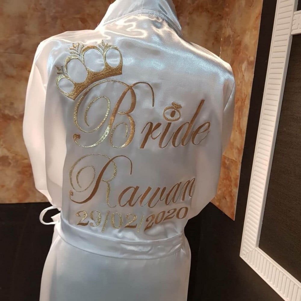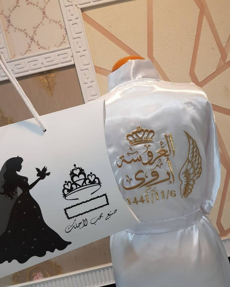 ارواب عرائس مطرزه بالاسم حسب الطلب تفاصيل المنتجيمكنك اضافه الأسم على روب العروس حسب الطلبالمقاسات S-M-L-XL-XXLيصلك داخل بوكس شفاف وانيقخامه حرير ناعمهيتوفر تطريز ذهبي وفضي