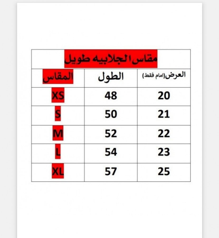 - انظر الى المقاسات من خلال تمرير الصوره إلى اليمين او اليسار