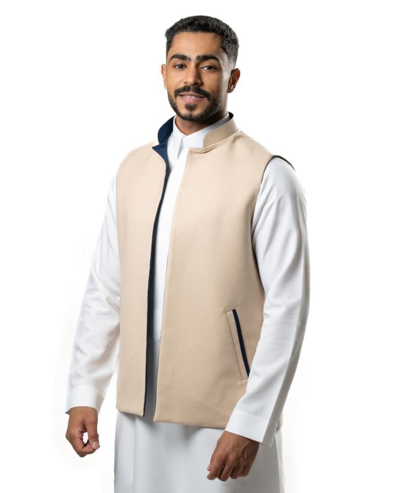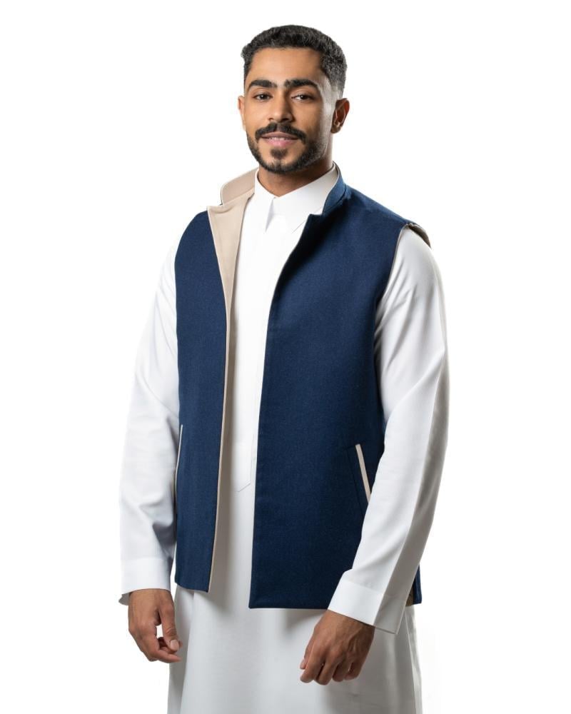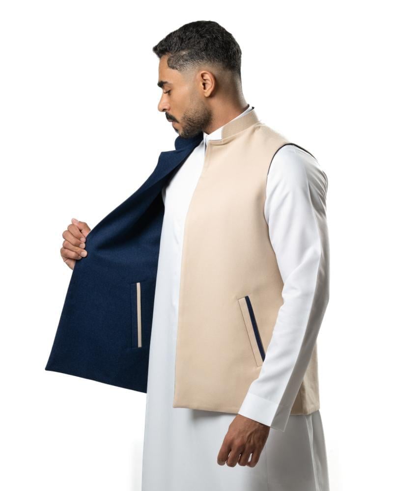 امنح إطلالتك لمسة من الرقي مع سديري دبل فيس، المصمم بعناية ليجمع بين اللون البيج الفاتح الناعم و الكحلي الداكن الأنيق. قطعة مميزة تمنحك إطلالتين فريدتين في تصميم واحد يناسب جميع الأوقات.